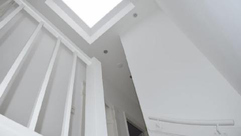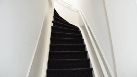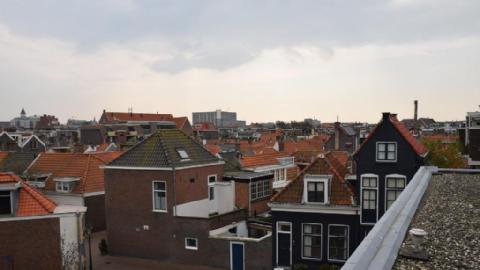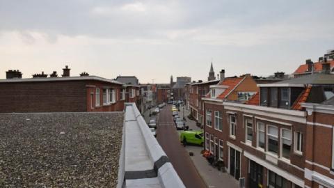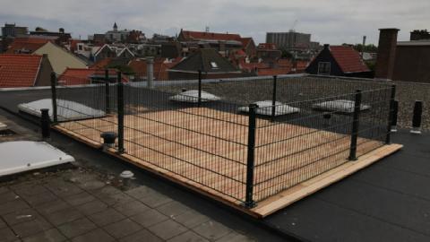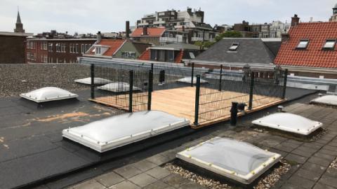 Vanuit de hal, trap naar riant dakterras met prachtig uitzicht over Scheveningen/Den Haag.